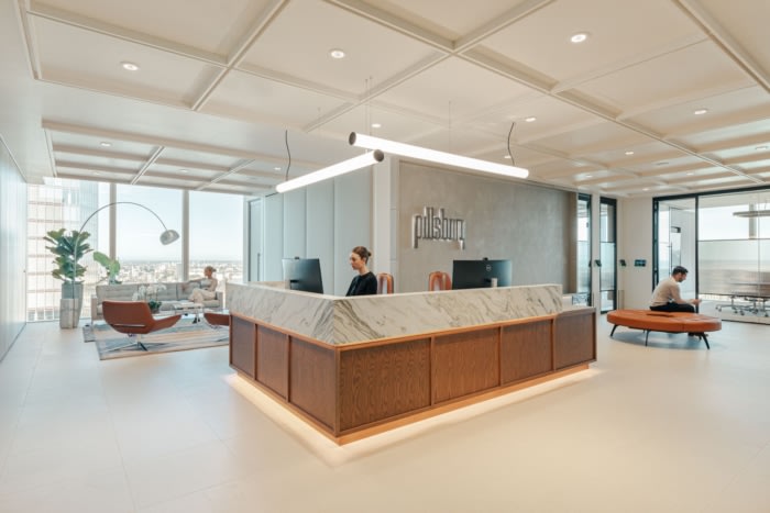 办公室室内装修:茶点和接待区彼此遵循相同的极简主义语言