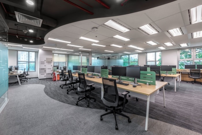 该空间通过其创新的布局和对可持续发展的承诺反映了这一理念。开放式平面图采用宽大的玻璃元素,营造出透明和联系的感觉,促进协作和充满活力的工作环境。#办公室室内装修#