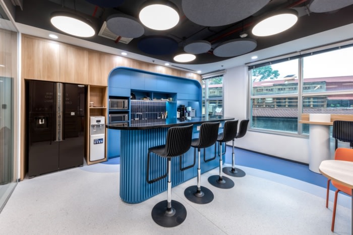 设计不仅优先考虑功能,还优先考虑员工的福祉。自然元素的融合为工作空间带来了平静和安宁的感觉,促进了更加轻松和专注的氛围。这与日益增长的亲自然设计趋势完全一致,该趋势强调自然对人类健康和生产力的积极影响。#办公室室内装修公司#